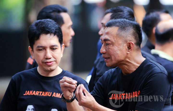 Pasangan calon Gubernur Dharma Pongrekun (kanan) saat berbincang santai dengan calon Wakil Gubernur Jakarta Kun Wardana (kiri) usai meresmikan posko tim sukses mereka di Sumur Batu, Jakarta Pusat, Rabu (25/9/2024). Posko ini diberi nama Tim Sukses Dharma-Kun Wardana Bersama Selamatkan Jiwa Kita dan menjadi pusat kegiatan tim kampanye pasangan ini selama masa pemilihan. Warta Kota/Yulianto