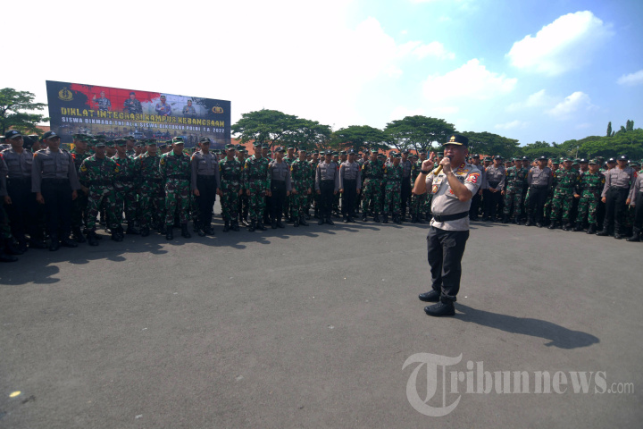 Ratusan siswa Dikmaba TNI AL dengan siswa Diktukba Polri menindaklanjuti perjanjian Kerja Sama TNI AL dan Polri tentang Penyelenggaraan Kegiatan Terintegrasi pada Pendidikan dan Pelatihan serta Sertifikasi Kompetensi mengikuti Diklat Integrasi Kampus Kebangsaan TNI AL-Polri di Lapangan Laut Maluku, Kodiklatal, Bumimoro, Kota Surabaya, Jawa Timur, Senin (12/12/2022). Kegiatan yang berlangsung pada 12-16 Desember 2022 tersebut untuk membentuk sinergitas yang dilaksanakan dengan menitik beratkan pada keterampilan perorangan dalam berkomunikasi, memotivasi diri, kemampuan memecahkan permasalahan, kerja sama tim, dan kepemimpinan. SURYA/AHMAD ZAIMUL HAQ