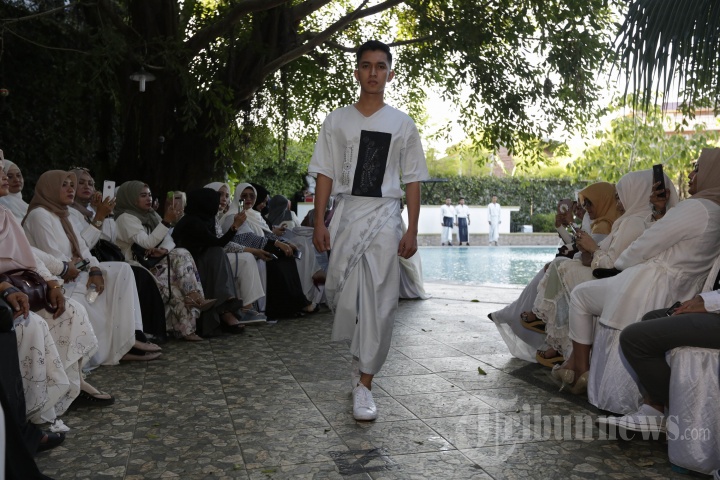 Sejumlah desainer muda yang tergabung dalam Indonesian Fashion Chamber (IFC) chapter Aceh menampilkan berbagai karya rancangannya yang bernuansa etnik Aceh, pada acara pelantikan IFC Communiy Aceh, di kediaman Darwati A Gani, Jalan Salam, Lampriek, Banda Aceh, Minggu (4/8/2019). SERAMBI INDONESIA/BUDI FATRIA