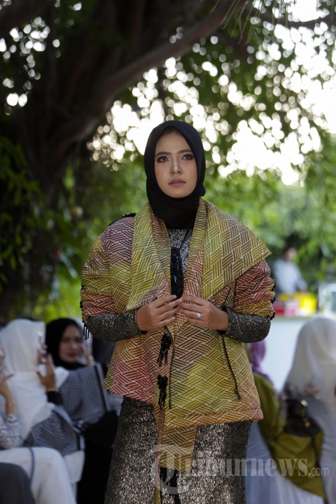 Sejumlah desainer muda yang tergabung dalam Indonesian Fashion Chamber (IFC) chapter Aceh menampilkan berbagai karya rancangannya yang bernuansa etnik Aceh, pada acara pelantikan IFC Communiy Aceh, di kediaman Darwati A Gani, Jalan Salam, Lampriek, Banda Aceh, Minggu (4/8/2019). SERAMBI INDONESIA/BUDI FATRIA