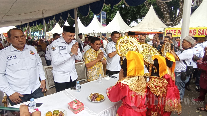 MINANGKABAU MARAKEK RASO - Warga Minangkabau yang bermukim di Kota Tangerang, menggelar event Festival Kuliner dan Seni Budaya Minang bertema Minangkabau Marakek Raso, yang diinisiasi oleh DPD Ikatan Keluarga Minang Kota Tangerang, di Malam Bale Kota, Kota Tangerang, Sabtu (2/8/2022). Acara yang menjadi wadah silaturahmi akbar warga Minang di perantauan ini menampilkan bazar kuliner legendaris Minangkabau, juga diramaikan dengan berbagai atraksi kesenian tradisional, fashion show bundo kanduang, serta berbagai lomba. (WARTAKOTA/Nur Ichsan)