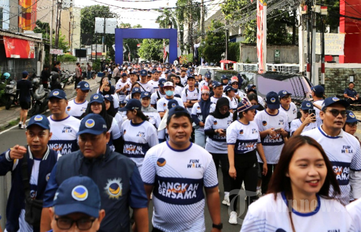 FUN WALK NASDEM - Peserta mengikuti Fun Walk NasDem di Jakarta, Minggu (9/11/2025). Kegiatan yang diikuti sekitar 1.000 peserta dari kader partai, simpatisan, dan masyarakat umum tersebut merupakan rangkaian HUT Ke-14 Partai NasDem. TRIBUNNEWS/IRWAN RISMAWAN