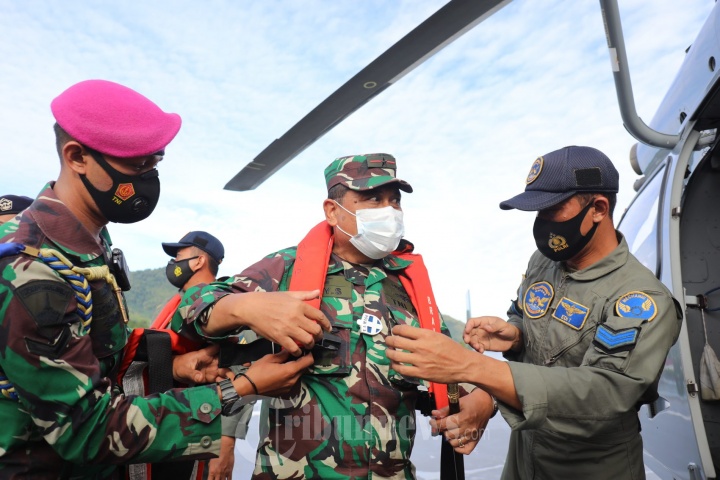 Gunakan Heli AKS, Danlantamal VI Tinjau Desa Terisolir korban Ge