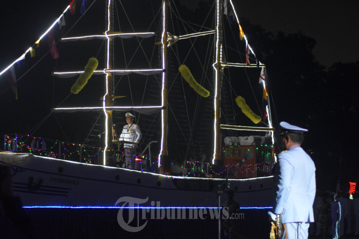 WISUDA PURNA WIRA PATI - Prosesi upacara Wisuda Purna Wira (WPW) Pati TNI AL 2022 yang dipimpin Kasal Laksamana TNI Yudo Margono di Kampus AAL Bumi Moro, Surabaya, Senin (24/10/2022) malam. Sebanyak 82 wisudawan Pati TNI AL mengikuti acara tradisi yang melambangkan berakhirnya masa pengabdian seorang Pati TNI AL untuk kepentingan bangsa dan negara. SURYA/AHMAD ZAIMUL HAQ
