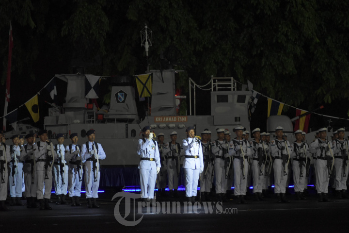 WISUDA PURNA WIRA PATI - Prajurit TNI AL mengikuti upacara Wisuda Purna Wira (WPW) Pati TNI AL 2022 yang dipimpin Kasal Laksamana TNI Yudo Margono di Kampus AAL Bumi Moro, Surabaya, Senin (24/10/2022) malam. Sebanyak 82 wisudawan Pati TNI AL mengikuti acara tradisi yang melambangkan berakhirnya masa pengabdian seorang Pati TNI AL untuk kepentingan bangsa dan negara. SURYA/AHMAD ZAIMUL HAQ