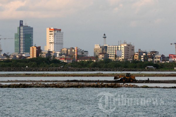 Kawasan penimbunan lahan di Pantai Tanjung Bunga, Makassar, Rabu (13/3/2013). Pengelola kawasan Tanjung Bunga, Gowa Makassar Tourism Development (GMTD) berencana melayangkan somasi hukum kepada lima pengembang yang tengah menimbun kawasan pantai barat Makassar, yaitu PT Mariso Indoland (Hj Najamiah), CV Amanda Nur Reality (Danny Pamanto), CV Satria Perdana (Benny Tungka), Yonggris, dan Agung Podomoro Group. TRIBUN TIMUR/SANOVRA JR