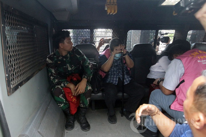 PENAHANAN TERSANGKA - Kedua tersangka berada di mobil tahanan tersandung kasus dugaan korupsi kapal seusai menjalani pemeriksaan di Kejaksaan Tinggi Sumatera Utara, Medan, Kamis (25/9/2025). Kejati Sumut menangkap dua tersangka berinisial HAP yang merupakan Direktur Teknik PT Pelindo I periode (2018-2021) dan BS yang juga Direktur Utama PT Dok dan Perkapalan Surabaya periode (2017-2021) terkait kasus dugaan tindak pidana korupsi pengadaan dua unit kapal tunda, dengan kerugian keuangan sebesar Rp92,35 miliar dan kerugian perekonomian setidaknya Rp23,03 miliar per tahun. TRIBUN MEDAN/DANIL SIREGAR