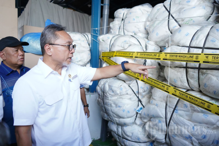 Menteri Perdagangan (Mendag) Zulkifli Hasan menghadiri prosesi pemusnahan barang-barang impor hasil pengawasan tata niaga impor di Kawasan Pergudangan Jaya Park, Sidoarjo, Jawa Timur, Sabtu (24/9/2022). Pemusnahan dilakukan terhadap 15 jenis produk impor di antaranya kategori produk elektronik, produk kehutanan, produk plastik, dan produk pakaian dengan total nilai sebesar Rp 11 Miliar. Importir produk-produk itu tidak memiliki perizinan impor yang dipersyaratkan sesuai dengan Peraturan Menteri Perdagangan (Permendag) Nomor 25 Tahun 2022 tentang Perubahan atas Permendag Nomor 20 Tahun 2021 tentang Kebijakan dan Pengaturan Impor. TRIBUNNEWS/HO