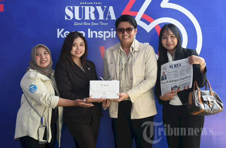 SAMBANG KANTOR - Rekan Bisnis dari Premier Place Hotel hadir pada "Open House" sekaligus 'Syukuran & Silaturahmi' 36 Tahun Harian Pagi SURYA Surabaya, Senin (10/11/2025). Kehadiran dan kunjungan kali ini sekaligus untuk memperkenalkan kantor baru "Harian Pagi Surya" yang kini berlokasi di Jl Raya Kendangsari Surabaya. (SURYA/HABIBUR ROHMAN)