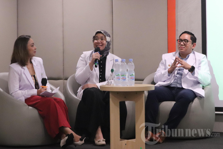 KERJASAMA PENGEMBANGAN STEM CELL - Dokter Spesialis Kedokteran Keluarga Layanan Primer Subspesialis Family Oriented Medical Care dr. Komang A. Wahyuningsih, M.Biomed (AAM), Spesialis Bedah Plastik Rekonstruksi, dan Estetik dr. Nurliati Sari Handini, Dokter Spesialis Ortopedi Konsultan Injury dr. Petrasama menjadi pembicara pada sesi talk show pada acara penandatanganan kerjasama di Jakarta, Selasa (29/7/2025). Langkah kolaboratif ini menjadi momentum penting bagi RS Atma Jaya sebagai rumah sakit akademik swasta pertama di Jakarta Utara yang telah mendapatkan sertifikasi resmi dari Kementerian Kesehatan untuk menyelenggarakan layanan terapi sel berbasis penelitian. Ini menandai peran strategis RS Atma Jaya dalam menjembatani ilmu kedokteran modern dengan layanan klinis berteknologi tinggi. Tribunnews/Jeprima