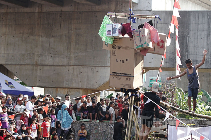 Keseruan Lomba Jalan Pinang di Kalimalang