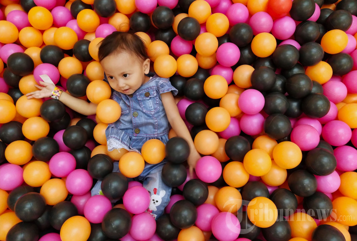 Anak-anak bermain di arena permainan anak Kolam Bola Fafa Kanimals Playland di Festival Citylink, Jalan Peta, Kota Bandung, Jawa Barat, Sabtu (13/8/2022). Kolam bola berukuran besar ini di dalamnya terdapat delapan model permainan anak, yakni jaring pelangi, perosotan, trampolin, halang rintang, banana boat, roda warna warni, jembatan gantung, dan lego, serta menampilkan karakter utama Fafa Globe berupa boneka panda berukuran besar. Arena bermain anak dengan tiket masuk mulai Rp 95 ribu itu akan hadir di Festival Citylink hingga 4 September 2022. TRIBUN JABAR/GANI KURNIAWAN