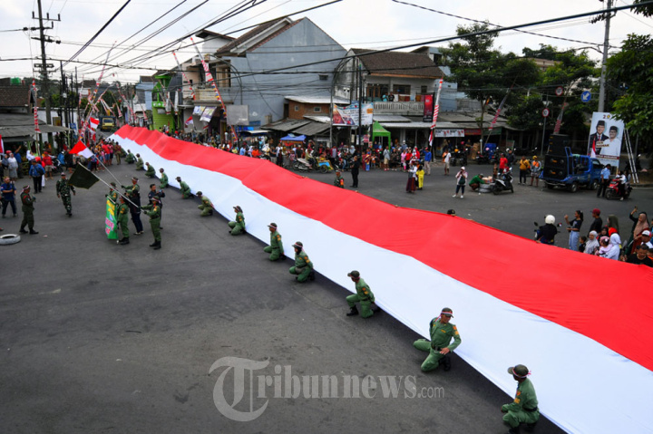 Linmas Lakukan Kirab Bendera Merah Putih Panjang 78 Meter