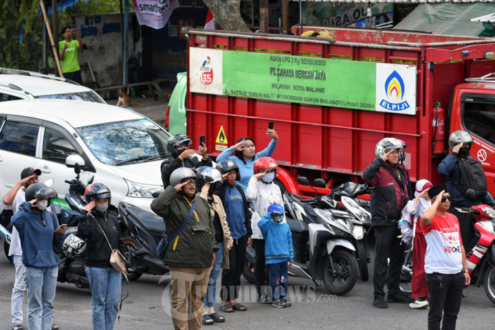 Sejumlah warga mengikuti upacara bendera yang diselenggarakan Linmas (Perlindungan Masyarakat) Kelurahan Bumiayu Kota Malang di sepanjang Jalan Kyai Parseh Jaya, Kelurahan Bumiayu, Kota Malang, Jawa Timur, Kamis (17/8/2023). Puluhan Linmas Kelurahan Bumiayu, Kota Malang melakukan kirab bendera dan melakukan upacara di Jalan Kyai Parseh bersama warga untuk memperingati HUT Ke - 78 Republik Indonesia. SURYA/PURWANTO