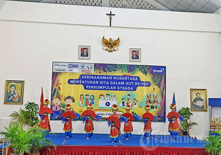 Sejumlah siswi Sekolah Dasar Strada Bhakti Wiyata 2 mengikuti lomba Akademi/Non-Akademik dalam rangka HUT Strada ke-100 di gedung Perkumpulan Strada Pusat, Jakarta (9/3/2024). Kegiatan yang bertemakan Keberagaman Nusantara Menyatukan Kita Dalam HUT Strada ke-100 Tahun ini diselenggarakan dalam merealisasikan Renstra Perkumpulan Strada, sekaligus sebagai ajang untuk meningkatkan keterampilan siswa, meningkatkan kreativitas gurus serta sarana mempromosikan sekolah strada. Para siswi yang mengikuti lomba tari dilatih oleh Etik Hartini dan dua guru pendamping yaitu Luna Marina serta Veronika Rini. Tribunnews/Ho