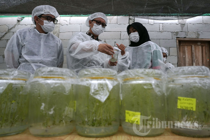 BPJS KETENAGAKERJAAN - Supply Chain & QA Director PT Rekso Nasional Food, Ronni Rombe (tengah) didampingi oleh perwakilan dari PT Horti Agro Makro (CHAMP) memantau proses penyemaian selada bokor (iceberg lettuce) saat melakukan kunjungan ke salah satu perkebunan milik supplier resmi McDonald?s Indonesia, PT Horti Agro Makro (CHAMP) di Desa Sirnagalih, Kecamatan Cisurupan, Kabupaten Garut, Jawa Barat, Rabu (26/2/2025). Pada kesempatan tersebut, McDonald's Indonesia, di bawah kepemilikan PT Rekso Nasional Food dan BPJS Ketenagakerjaan Jakarta Cilandak secara simbolis menyerahkan kartu BPJS Ketenagakerjaan kepada 68 mitra petani dari Garut dan Cianjur. Penyerahan kartu BPJS Ketenagakerjaan tersebut melanjutkan komitmen McDonald's Indonesia dalam mendukung pemberdayaan petani lokal dengan langkah penting yakni memberikan fasilitas BPJS Ketenagakerjaan yang menawarkan perlindungan Jaminan Kecelakaan Kerja (JKK) dan Jaminan Kematian (JKM) kepada mitra petani di wilayah Jawa Barat yang telah berjalan sejak 2023. Inisiatif ini sekaligus menjadikan McDonald?s Indonesia sebagai pelopor restoran cepat saji yang memberikan perlindungan ketenagakerjaan kepada lebih dari 100 mitra petani yang memiliki andil penting dalam menciptakan ekosistem rantai pasok berkualitas dan berkelanjutan. (TRIBUN JABAR/GANI KURNIAWAN)