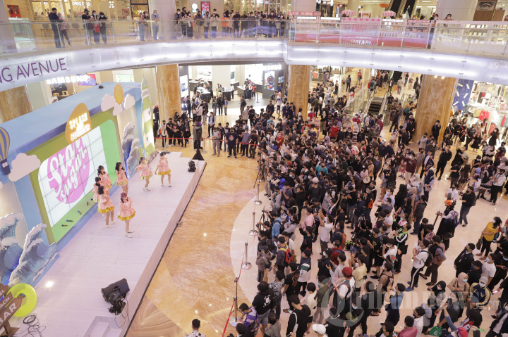 Pengunjung mal Lotte Shopping Avenue menyaksikan acara COS-HYPE di Jakarta, Sabtu (28/5/2022). Acara tersebut memberikan wadah dan kembali menikmati keseruan kepada penggemar kebudayaan Jepang khususnya anime, cosplay, dan idol performance yang sempat terhenti karena pandemi Covid-19. TRIBUNNEWS/HERUDIN