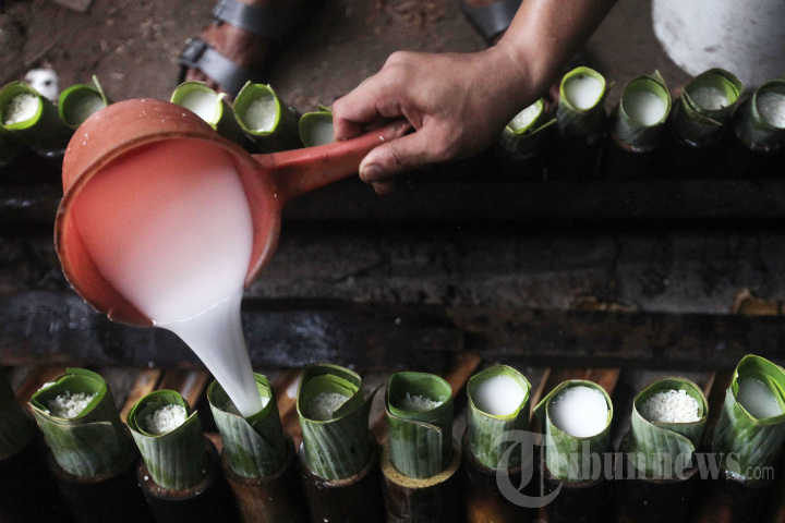 LAMANG TAPAI - Perajin saat memasak Lamang Tapai makanan tradisional dari Minangkabau dengan kayu bakar di Kawasan Senen, Jakarta, Jumat (7/3/2025). Selama bulan suci Ramadan, Makanan Lamang Tapai menjadi salah satu menu pilihan warga Jakarta untuk jadi santapan berbuka puasa. Pedagang Lamang Tapai mengaku mengalami peningkatan produksi selama bual suci ramadan. Dalam satu hari perajin dapat memproduksi Lamang Tapai hingga 300 buah per hari. Pedangang menjual Lamang Tapai seharga Rp 35 hingga Rp 50 ribu per batang Lamang Tapai. Lamang Tapai akan dijual disajikan dengan tapai yang terbuat dari ketan hitam dan tape. Tribunnews/Jeprima