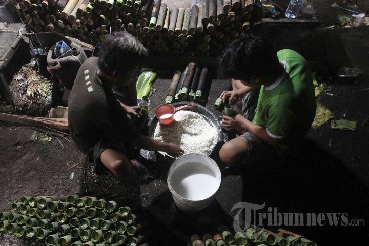 LAMANG TAPAI - Perajin saat memasak Lamang Tapai makanan tradisional dari Minangkabau dengan kayu bakar di Kawasan Senen, Jakarta, Jumat (7/3/2025). Selama bulan suci Ramadan, Makanan Lamang Tapai menjadi salah satu menu pilihan warga Jakarta untuk jadi santapan berbuka puasa. Pedagang Lamang Tapai mengaku mengalami peningkatan produksi selama bual suci ramadan. Dalam satu hari perajin dapat memproduksi Lamang Tapai hingga 300 buah per hari. Pedangang menjual Lamang Tapai seharga Rp 35 hingga Rp 50 ribu per batang Lamang Tapai. Lamang Tapai akan dijual disajikan dengan tapai yang terbuat dari ketan hitam dan tape. Tribunnews/Jeprima