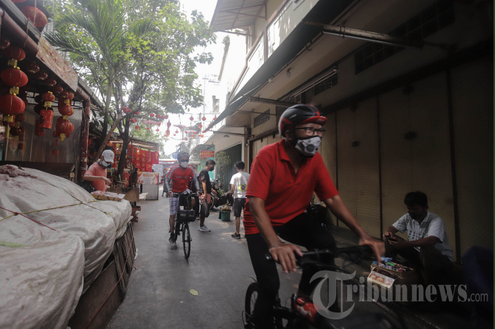 Suasana di Jalan Kemanangan Raya Glodok Jakarta yang dijadikan pasar tradisional, Selasa (1/2/2022). Glodok merupakan kawasan Pecinan terkenal yang mulai dihuni orang Tionghoa pada tahun 1600an dan menjadi pusat perdagangan terbesar di Jakarta. TRIBUNNEWS/HERUDIN