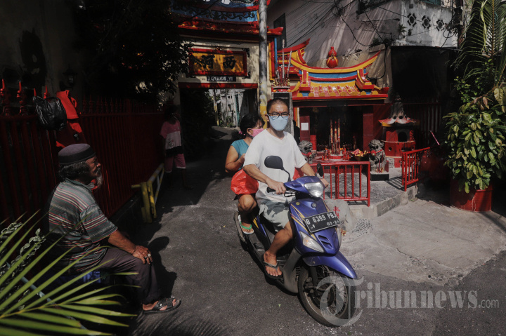 Suasana di Jalan Kemenangan II Glodok Jakarta, Selasa (1/2/2022). Glodok merupakan kawasan Pecinan terkenal yang mulai dihuni orang Tionghoa pada tahun 1600an dan menjadi pusat perdagangan terbesar di Jakarta. TRIBUNNEWS/HERUDIN