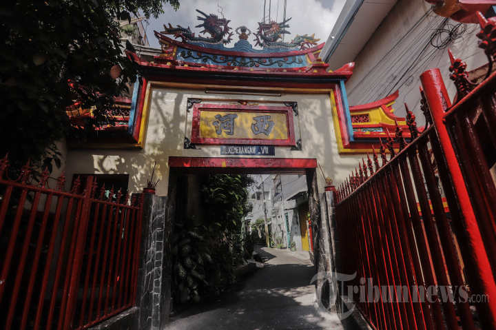 Gapura berornamen Tionghoa berada di ujung sebuah gang di Jalan Kemanangan III Glodok, Jakarta, Selasa (1/2/2022). Glodok merupakan kawasan Pecinan terkenal yang mulai dihuni orang Tionghoa pada tahun 1600an dan menjadi pusat perdagangan terbesar di Jakarta. TRIBUNNEWS/HERUDIN