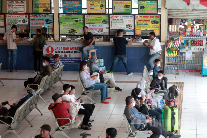 Pemudik menunggu bus yang akan mengangkut mereka ke kampung halaman di Terminal Kampung Rambutan, Jakarta, Senin (18/4/2022). Menteri Perhubungan Budi Karya Sumadi menyarankan masyarakat melakukan perjalanan mudik lebaran 2022 lebih awal guna menghindari risiko kemacetan lalu lintas. TRIBUNNEWS/IRWAN RISMAWAN