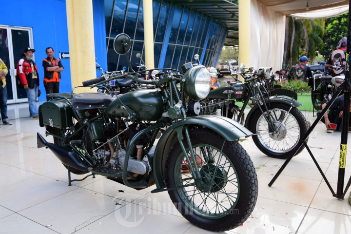 Komunitas Motor Antique Club Indonesia (MACI) melakukan pameran moto klasik di Gor Ken Arok Kota Malang dalam rangka memperingati hari ulang tahun yang ke-21, Sabtu (23/7/2022). Ribuan motor lawas mengikuti pawai dan berkeliling Kota Malang serta mengadakan pameran motor antik di Gor Ken Arok, Kota Malang. TRIBUN JATIM/PURWANTO