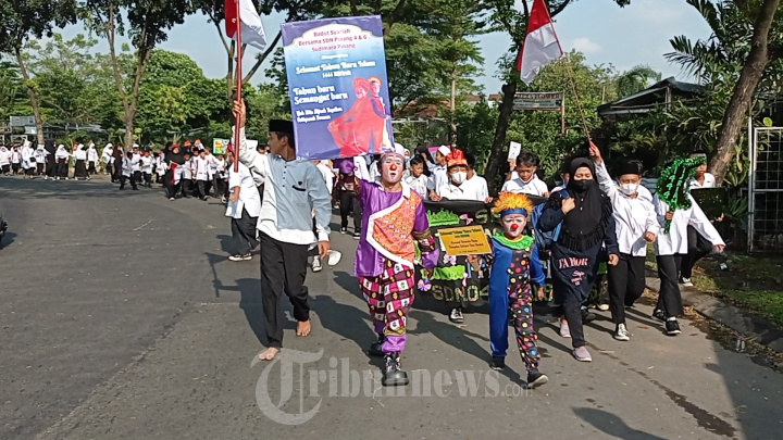 PAWAI - Ratusan siswa SD Negeri Pinang 4 dan 6 Kota Tangerang, mengikuti pawai akbar dalam rangka menyambut Tahun Baru Islam 1 Muharram 1444 Hijriyah, Jumat (29/7/2022). Mereka sangat antusias mengikuti kegiatan ini yang kembali digelar setelah sempat vakum selama 2 tahun akibat pandemi. WARTA KOTA.NUR ICHSAN