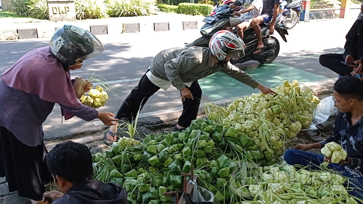 Pedagang kulit ketupat marak menjelang perayaan Hari Raya Idul Adha di Jalan TMP Taruna, Kota Tangerang, Banten, Sabtu (9/7/2022). Kulit ketupat yang mereka jajakan banyak dicari warga untuk menjadi wadah pembuatan menu ketupat yang merupakan hidangan khas warga di saat lebaran. Warta Kota/Nur Ichsan