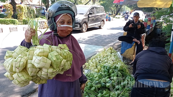 Pedagang kulit ketupat marak menjelang perayaan Hari Raya Idul Adha di Jalan TMP Taruna, Kota Tangerang, Banten, Sabtu (9/7/2022). Kulit ketupat yang mereka jajakan banyak dicari warga untuk menjadi wadah pembuatan menu ketupat yang merupakan hidangan khas warga di saat lebaran. Warta Kota/Nur Ichsan