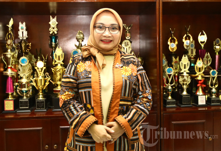 Pelaksana tugas (Plt) Ketua TP PKK Wiwiek Hargono Tri Adhianto, difoto saat sesi wawancara khusus di Kantor Walikota Bekasi, Jawa Barat, Selasa (20/7/2022). Warta Kota/Angga Bhagya Nugraha