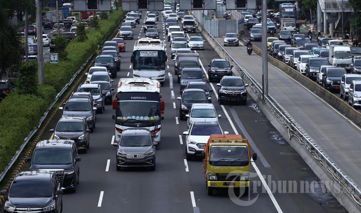 Kendaraan truk melintas di Jalan tol Dalam Kota kawasan Tebet, Jakarta Selatan, Selasa (20/12/2022). Pemerintah akan membatasi operasional kendaraan angkutan barang selama libur Natal dan tahun baru atau Nataru. Kebijakan ini dilakukan untuk mengantisipasi kemacetan akibat lonjakan volume lalu-lintas keluar atau masuk Jabodetabek. (Warta Kota/Angga Bhagya Nugraha)