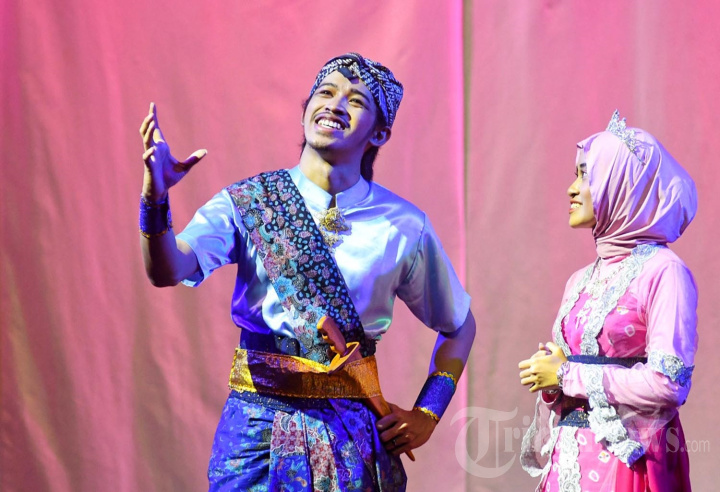 PENTAS TEATER - Seniman membawakan adegan dalam pementasan teater berjudul Air Terjun Penantian di Studio Universitas Brawijaya (UB) TV, Kota Malang, Jawa Timur, Sabtu (14/6/2025). Pementasan teater tersebut diadakan oleh studio seni Kakasya yang mengangkat cerita rakyat legenda Coban Rondo untuk menumbuhkan rasa cinta terhadap budaya yang mengandung nilai moral tinggi sekaligus memberi ruang ekspresi bagi para pelaku seni akting, musik, tari, dan tata artistik. SURYA/PURWANTO