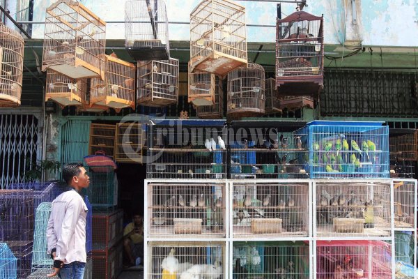 Seorang warga mengamati aneka jenis burung yang dijual di pasar burung Jalan Bintang Medan, Sumut, Jumat (6/7/2012). Menurut lembaga penyelamatan satwa liar,selain Jakarta,Surabaya dan Bali, Medan merupakan pintu gerbang perdagangan satwa ke pasar internasional. (Tribun Medan/Dedy Sinuhaji)
