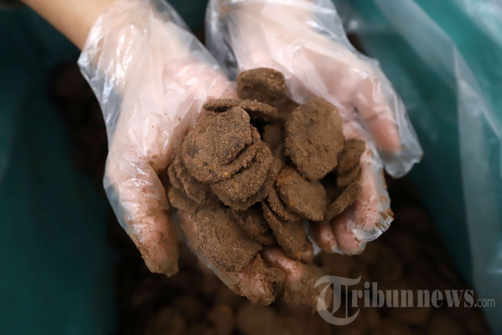 KERIPIK PISANG ASKHA - Pekerja menunjukkan keripik pisang rasa coklat di Toko Keripik Askha Jaya, Kota Bandar Lampung, Lampung, Jumat (21/3/2025). Toko Keripik Askha Jaya jelang lebaran permintaannya meningkat 5 hingga 10 ton khususnya keripik pisang yang menjadi oleh-oleh khas Lampung. Harga yang ditawarkan mulai Rp 19.000 hingga Rp 30.000 /pcs. Tribunnews/Jeprima