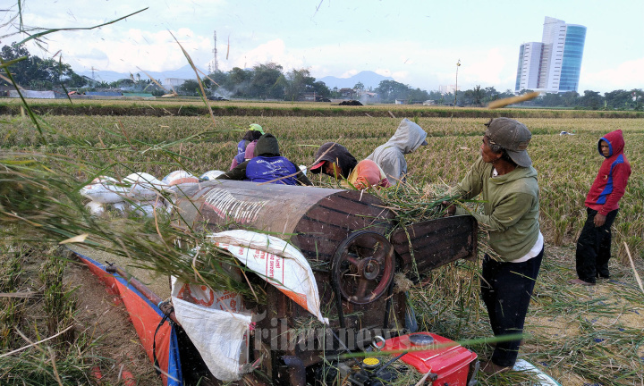 Petani Padi Melakukan Perontokan Gabah Melalui Proses Mekamis