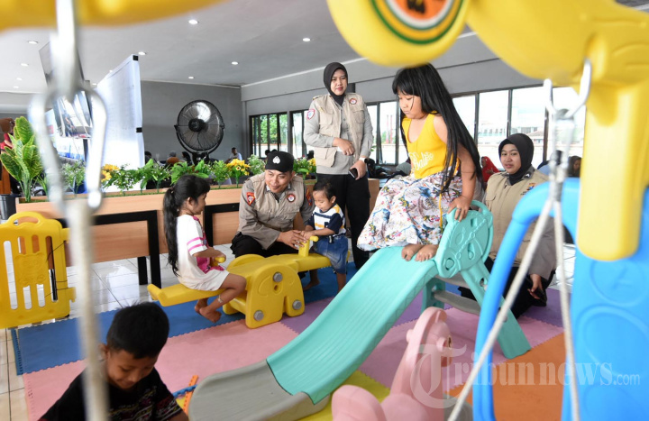 PENDAMPINGAN PSIKOLOGI - Tim Polresta Banyuwangi memberikan pendampingan psikologi pada keluarga korban KMP Tunu Pratama Jaya yang bertahan di Posko Pelabuhan Ketapang, Minggu (6/7/2025). Trauma healing ini dilakukan? untuk meredakan kecemasan. Karena, seperti diketahui tampak sejumlah keluarga yang menunggu nasib korban yang sedang dalam proses pencarian. SURYA/AHMAD ZAIMUL HAQ