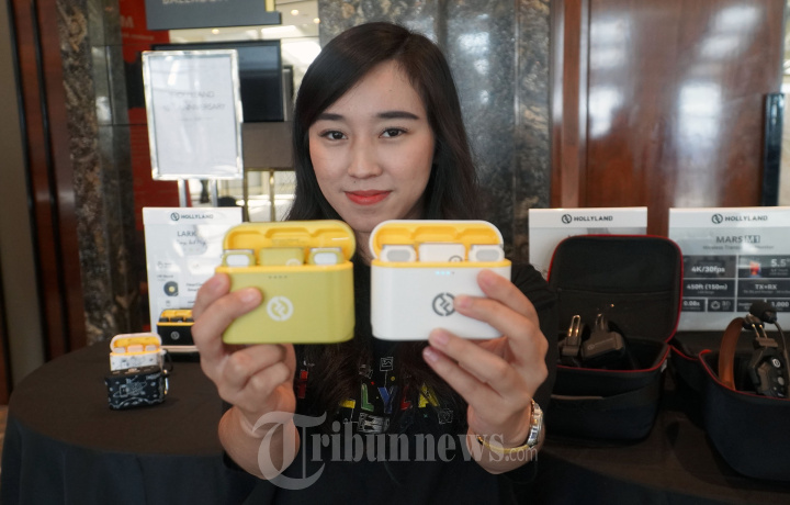 CEO Hollyland Lima Wen dan CEO Denka Pratama Indonesia Tjong Tjen Tjhing menunjukkan produk Hollyland Lark M1, Mars 4K, Mars M1 dan juga Solidcom C1 di kawasan PIK, Jakarta Utara, Jumat (17/3).PT Denka Pratama Indonesia sebagai satu-satunya dealer resmi Hollylland memperkenalkan produk Hollyland Lark M1, Mars 4K, Mars M1 dan juga Solidcom C1 ke Indonesia. Rangkaian perangkat audio yang ditujukan untuk para konten kreator dan para pekerja seni yang bergerak dibidang audio visual. Warta Kota/Angga Bhagya Nugraha