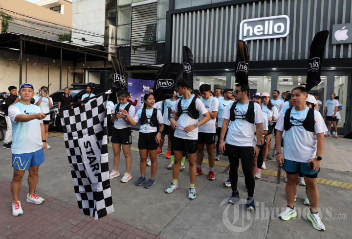 Peserta mengikuti 5K Fun Run saat acara rangkaian ulang tahun ke-4 hello Store di Jakarta, Sabtu (25/4/2026). Rangkaian ulang tahun ke-4 hello Store menghadirkan program helloversary: Explore The Unexpected, hello Store, Authorized Apple Reseller (AAR) yang dioperasikan oleh PT Global Astha Niaga (PT GAN) menggabungkan promo spesial dengan aktivitas komunitas melalui sesi Ruang Kelas dan 5K Fun Run yang juga digelar di beberapa kota lainnya seperti Bali pada 19 April dan Bandung pada tanggal 25-26 April 2026, menghadirkan pengalaman yang konsisten bagi pelanggan dan komunitas di berbagai wilayah. TRIBUNNEWS/IRWAN RISMAWAN