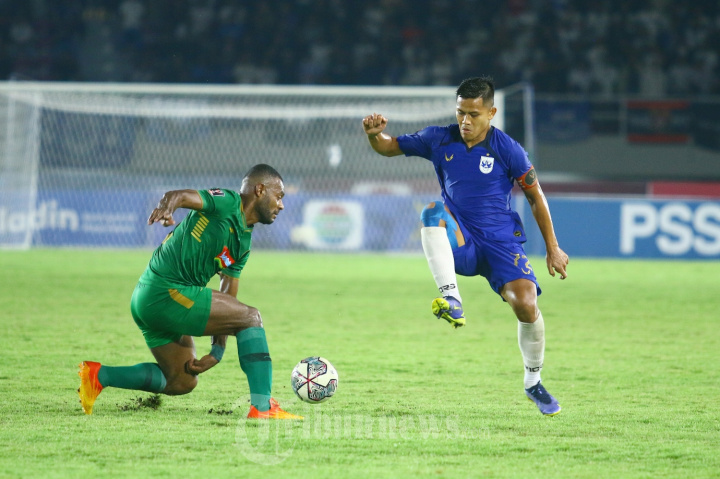 Aksi kapten PSIS Semarang Frendi Saputra berjibaku dengan pemain PSS Sleman Marckho Sandi Meraudje dalam laga lanjutan Grup A Piala Presiden 2022 di Stadion Manahan Solo, Jumat (24/6/2022) malam - (Tribun Jateng/Franciskus Ariel Setiaputra)