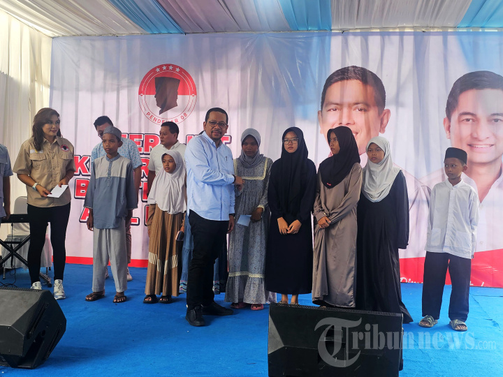 Wakil Kepala Kantor Staf Presiden (KSP) M Qodari menghadiri kegiatan silaturahmi bersama warga Banten yang dilaksanakan Relawan Pendekar 08 di Kampung Buaran, Lengkong Karya Tangerang Selatan, Sabtu (14/12/2024). Selain silaturahmi dengan warga, kegiatan bertajuk Merajut Kebersamaan Banten Maju Adil Merata juga diadakan kegiatan santunan kepada 80 anak yatim-piatu dan bersih-bersih lingkungan serta penanaman pohon sukun untuk penghijauan di kawasan sekitar lokasi kegiatan. Selain Qodari, turut hadir Ketua Umum Pendekar 08 Ancilla Yanny Irmella, Wakil Ketua DPRD Banten Yudi Budi Wibowo, dan Ketua DPP PSI. TRIBUNNEWS/HO