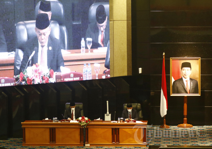 Gubernur DKI Jakarta Anies Baswedan (kanan) dan Wakil Gubernur Ahmad Riza Patria menghadiri Rapat Paripurna di Gedung DPRD DKI Jakarta, Selasa (13/9/2022).