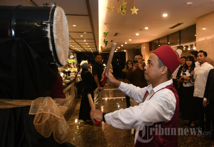SALAM RAMADHAN - Dengan iringan suara bedug maghrib, tamu dan undangan dipersilahkan menikmati beraneka menu yang ditawarkan di 'The Travellodge Restaurant' Hotel Santika Premiere Gubeng Surabaya, Selasa (25/2/2025). Corporate, Media & Government Gathering bertema "Salam Ramadhan" ini diisi dengan pengenalan aneka menu untuk Bulan Ramadhan dengan berbagai pilihan yang diantaranya aneka pilihan masakan Timur Tengah, Tradisional dari berbagai daerah serta 'Pojok Suroboyo' yang menyediakan berbagai cemilan untuk takjil. SURYA/HABIBUR ROHMAN