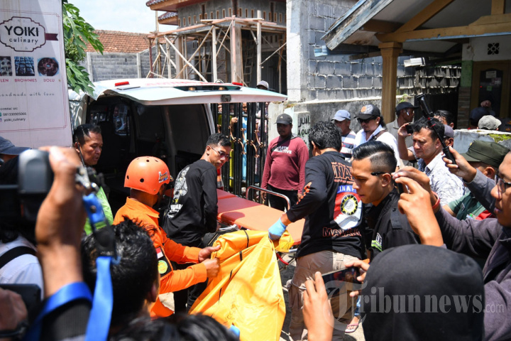 Petugas membawa jenazah korban satu keluarga diduga bunuh diri di Dusun Boro Bugis, Desa Saptorenggo, Kecamatan Pakis Kabupaten Malang, Jawa Timur, Selasa (12/12/2023). Identitas korban Korban yaitu suami W (38), istri SL (35) dan anak AKE (13). Belum diketahui motif satu keluarga mengakhiri hidupnya. SURYA/PURWANTO