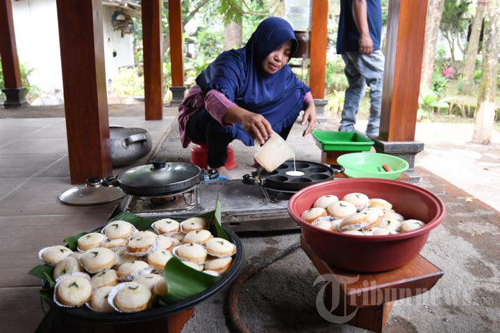 Warga membuat makanan apem dalam tradisi Megengan Apem di komplek pemakaman Islam Ki Ageng Gribig, Kota Malang, Jawa Timur, Senin (20/3/2023). Tradisi tersebut dilakukan untuk menyambut bulan Ramadan. SURYA/PURWANTO