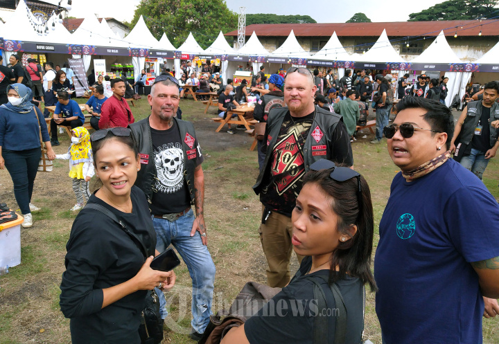 Sejumlah bikers bersantai sambil berbincang dalam gelaran Ulang Tahun ke-34 Bikers Brotherhood 1% MC (BB1%MC) Indonesia di Laswi Heritage, Kota Bandung, Jawa Barat, Sabtu (15/10/2022). Acara yang berlangsung selama dua hari itu mengusung tema "Back to the Fckn' Good Old Time", dengan harapan seluruh member di 18 chapter bisa memiliki semangat yang sama untuk membesarkan BB1%MC Indonesia dengan membawa misi persaudaraan dan menjalankan program 100 tahun Bakti Untuk Negeri. (TRIBUN JABAR/GANI KURNIAWAN)