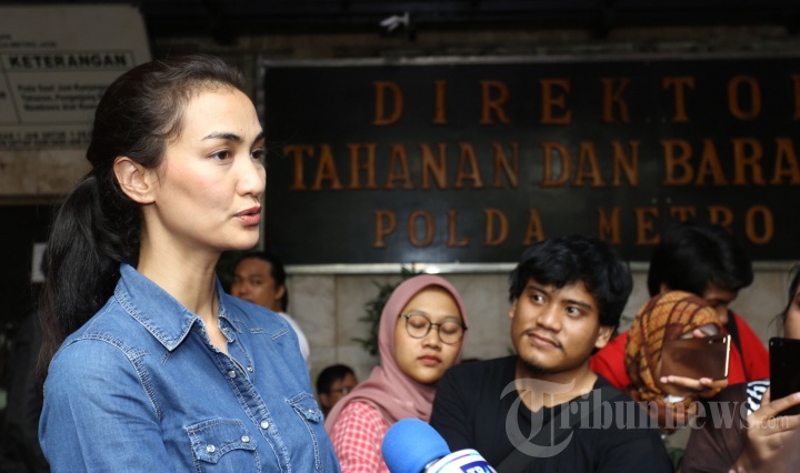 Atiqah Hasiholan berbicara kepada wartawan usai menjenguk ibunya, Ratna Sarumpaet di Rutan Polda Metro Jaya, Jakarta Selatan, Selasa (16/7/2019). Atiqah Hasiholan menjenguk ibunya sekaligus memberikan tumpeng tepat pada hari ulang tahun ke-70 Ratna Sarumpaet. Warta Kota/Angga Bhagya Nugraha