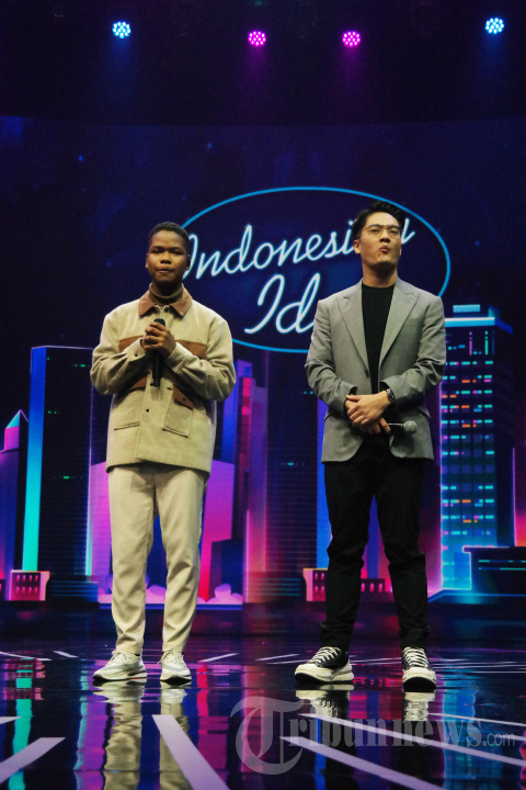 Abdul Azis Ahmad atau Azis Idol (kiri) didampingi host Indonesian Idol, Boy William usai tampil dalam babak Final Showcase 1 Indonesian Idol XII 2023 di Studio RCTI+, MNC Studios, Kebon Jeruk, Jakarta Barat, Senin (23/1/2023) malam. Sebanyak 17 peserta tampil dalam babak Final Showcase Indonesian Idol 2023 yang terbagi dalam dua hari penampilan. TRIBUNNEWS/DWI HARYANTO SAPTO NUGROHO
