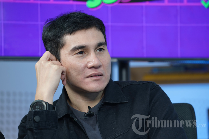 Aktor Vino G. Bastian saat ngobrol bareng Host Si Paling Seleb Bayu Indra Permana di Studio Tribun Network, Jalan Palmerah Selatan, Jakarta Pusat, Selasa (6/8/2024). Dalam wawancara tersebut ia mengisahkan tentang serunya syuting film bergenre komedi horor berjudul Kang Mak. TRIBUNNEWS/LENDY RAMADHAN